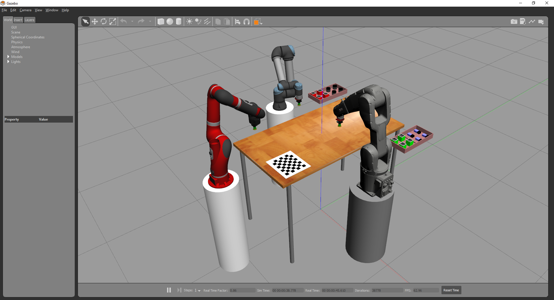 The simulator uses the Robot Raconteur Gazebo Plugin, which allows for most of the API of Gazebo to be accessed using Robot Raconteur. Simulated device drivers interact with the plugin to simulate device behavior.