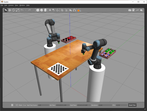 The simulator uses the Robot Raconteur Gazebo Plugin, which allows for most of the API of Gazebo to be accessed using Robot Raconteur. Simulated device drivers interact with the plugin to simulate device behavior.